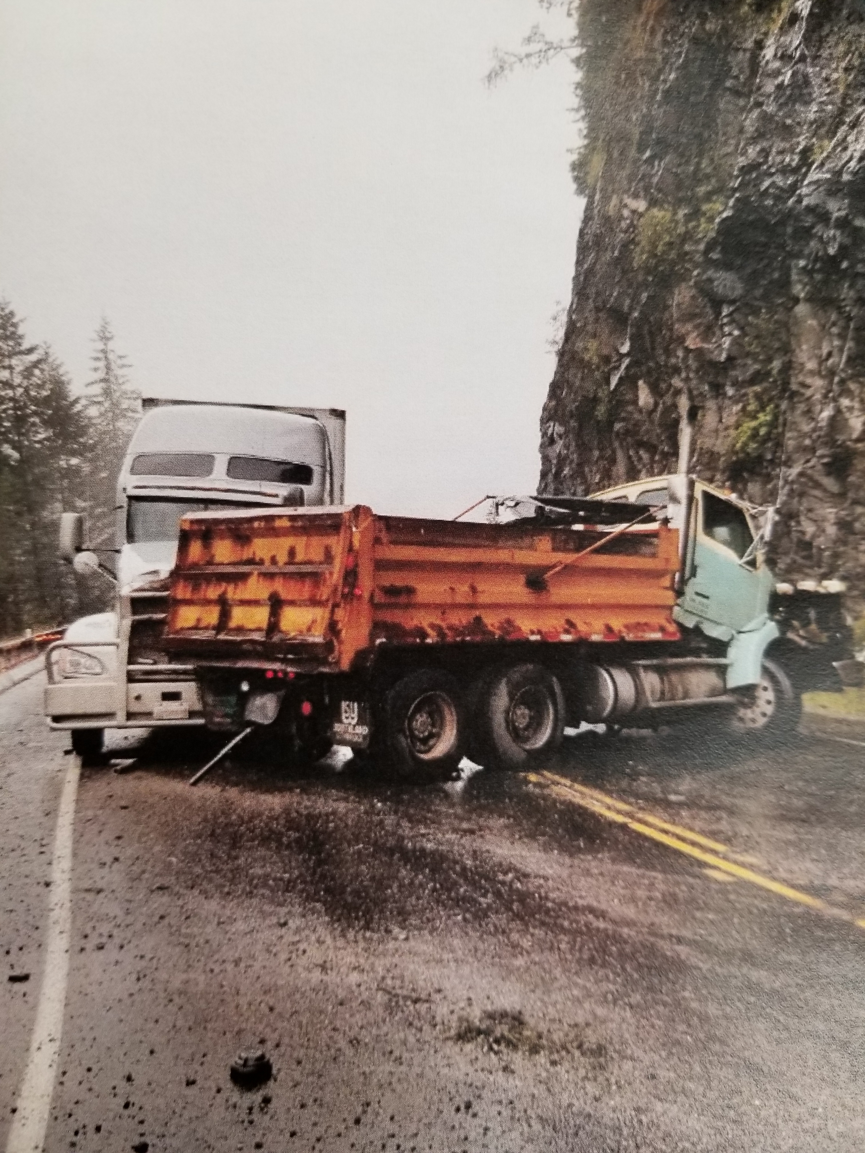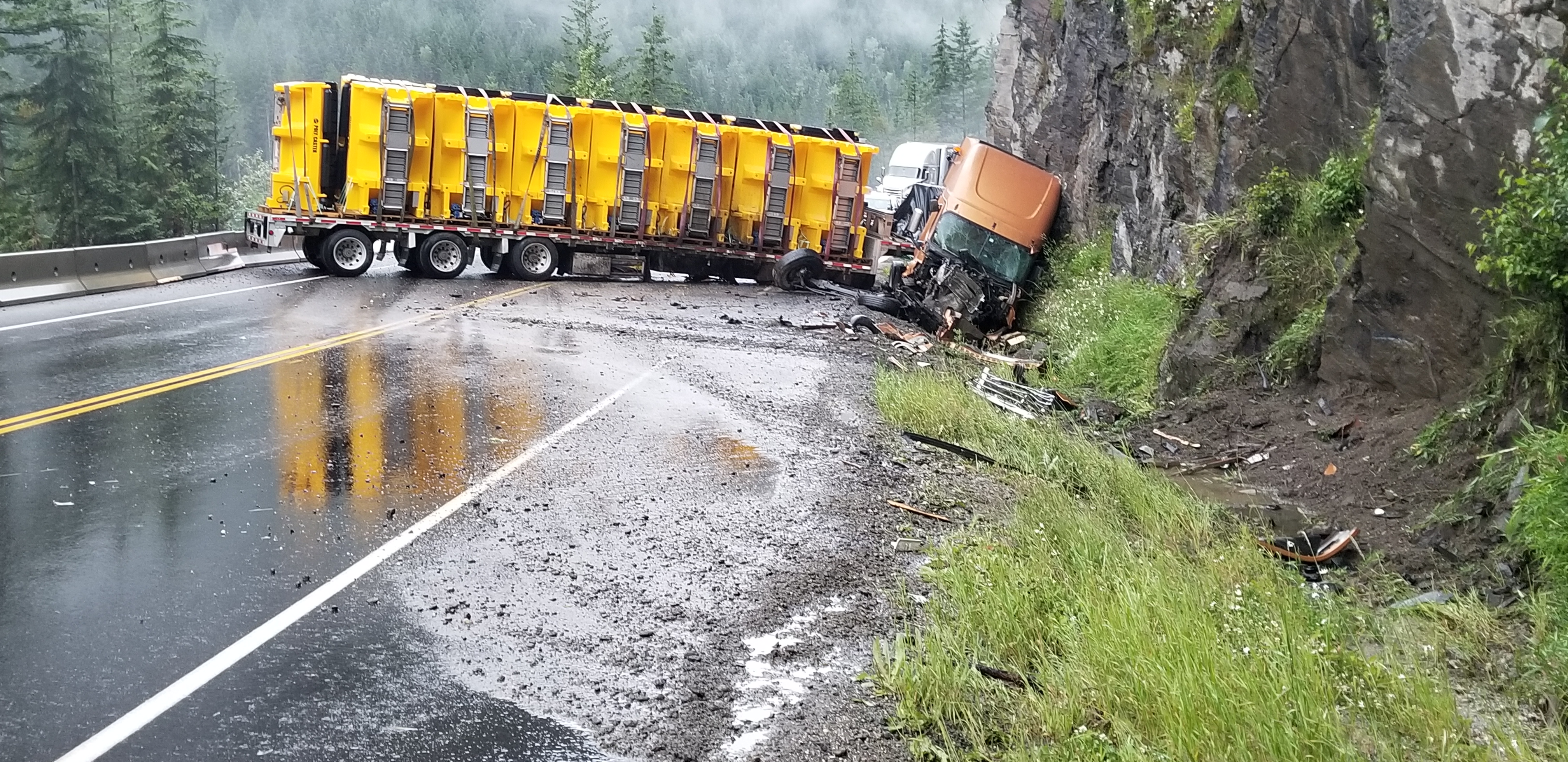 Early the next morning a semi jack-knifed on the wet highway in the same area injuring two.