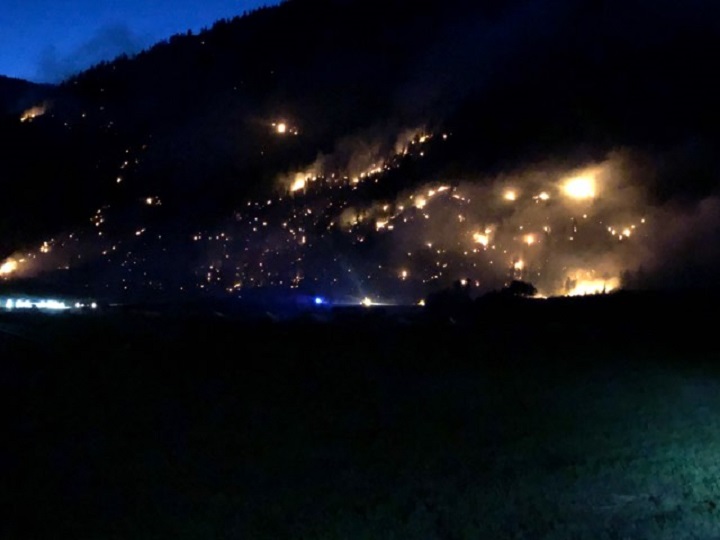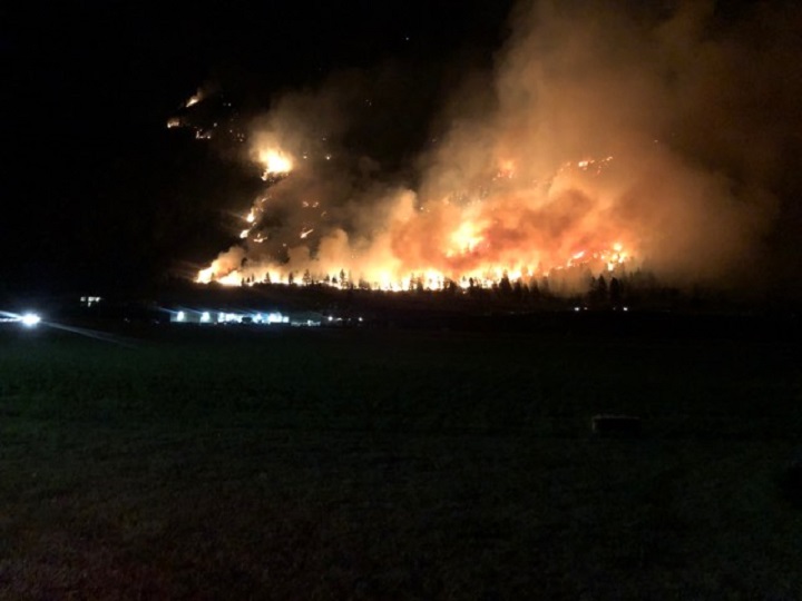 The fire, which is burning adjacent to Highway 3 between Cawston and Osoyoos, grew overnight when downslope winds fanned the blaze.
