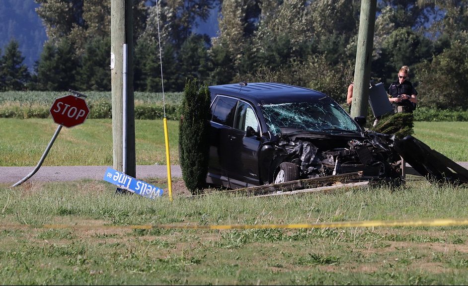 Abbotsford police said officers and paramedics responded to the collision between a pickup truck and a SUV in the intersection of Marion Road and Wells Line Road just before 3:30 p.m.