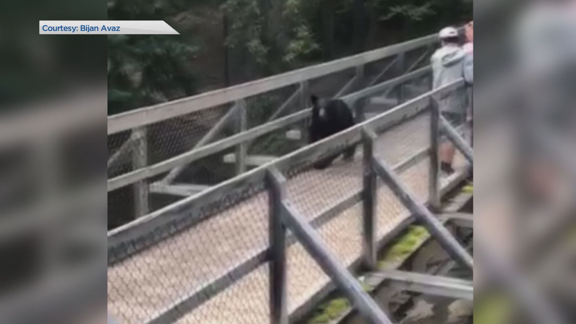 Bijan Avaz, a college student visiting from Los Angeles, captured video of a bear running across a wooden footbridge full of people, including children.