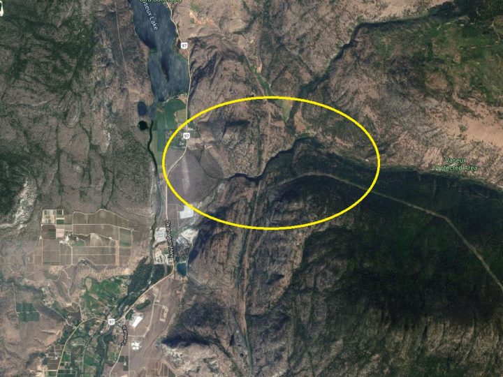 Gallagher Canyon, just north of Oliver, where the 10 hikers went missing. Google Maps
