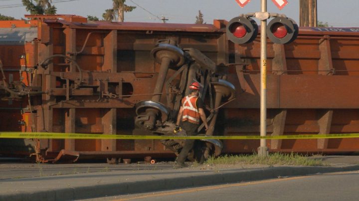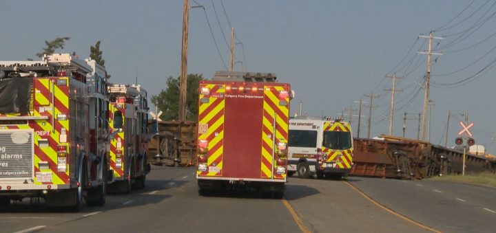 Innes Fraser with the Calgary Fire Department said two conductors were on the train at the time but were uninjured and able to get out safely.