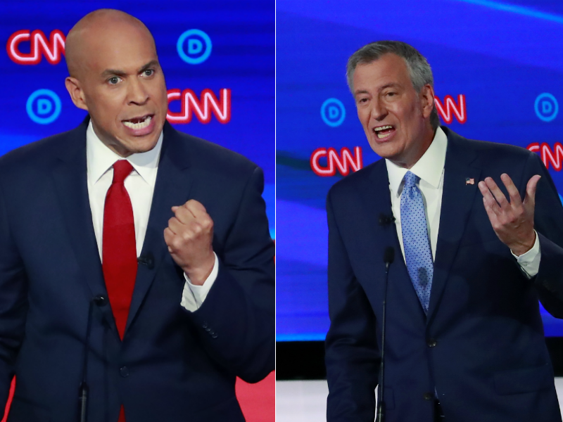 It’s the chant that greeted New York Mayor Bill de Blasio and New Jersey Sen. Cory Booker as they spoke on stage on the second night of the Democratic debates in Detroit on Wednesday night.