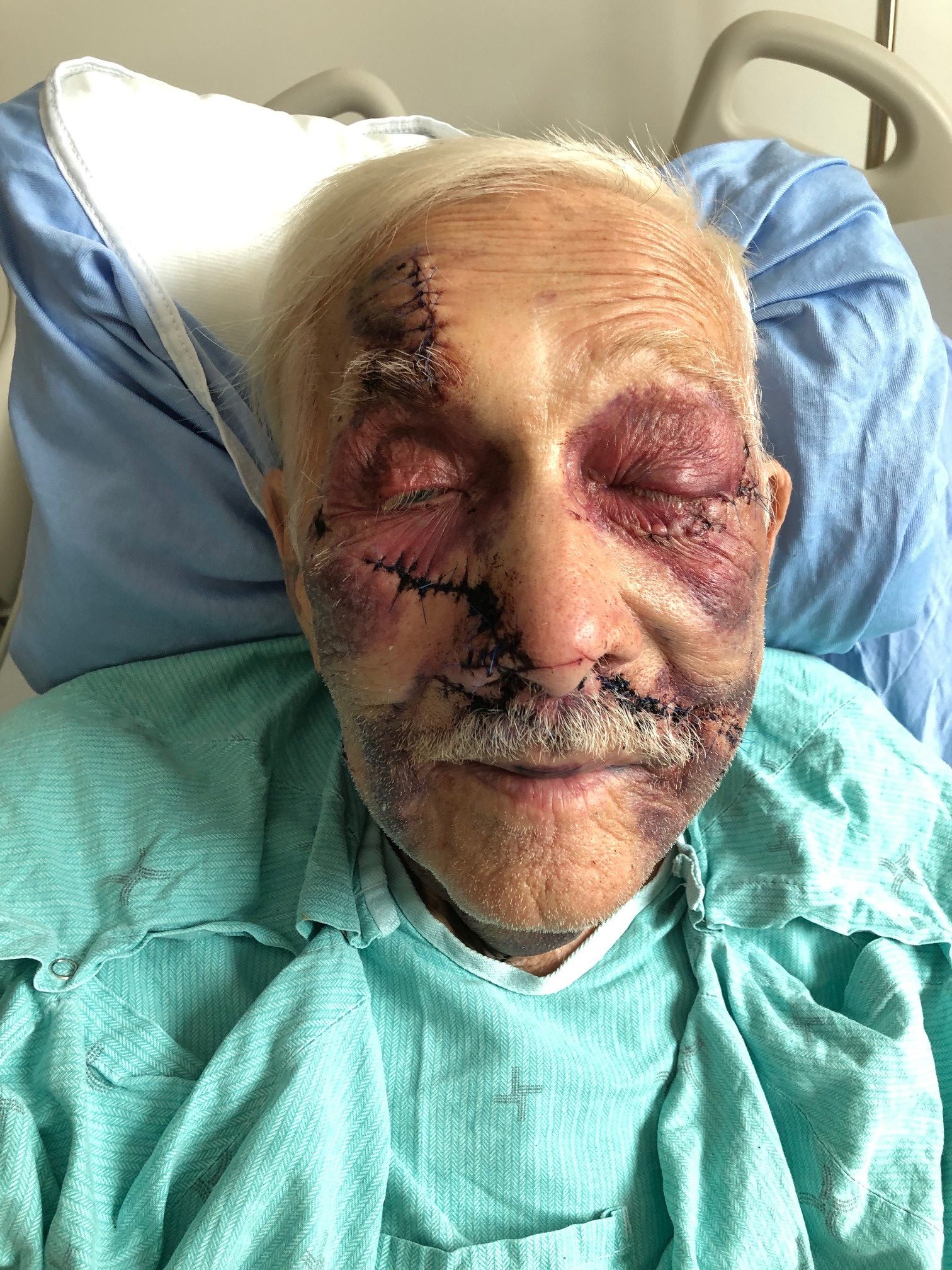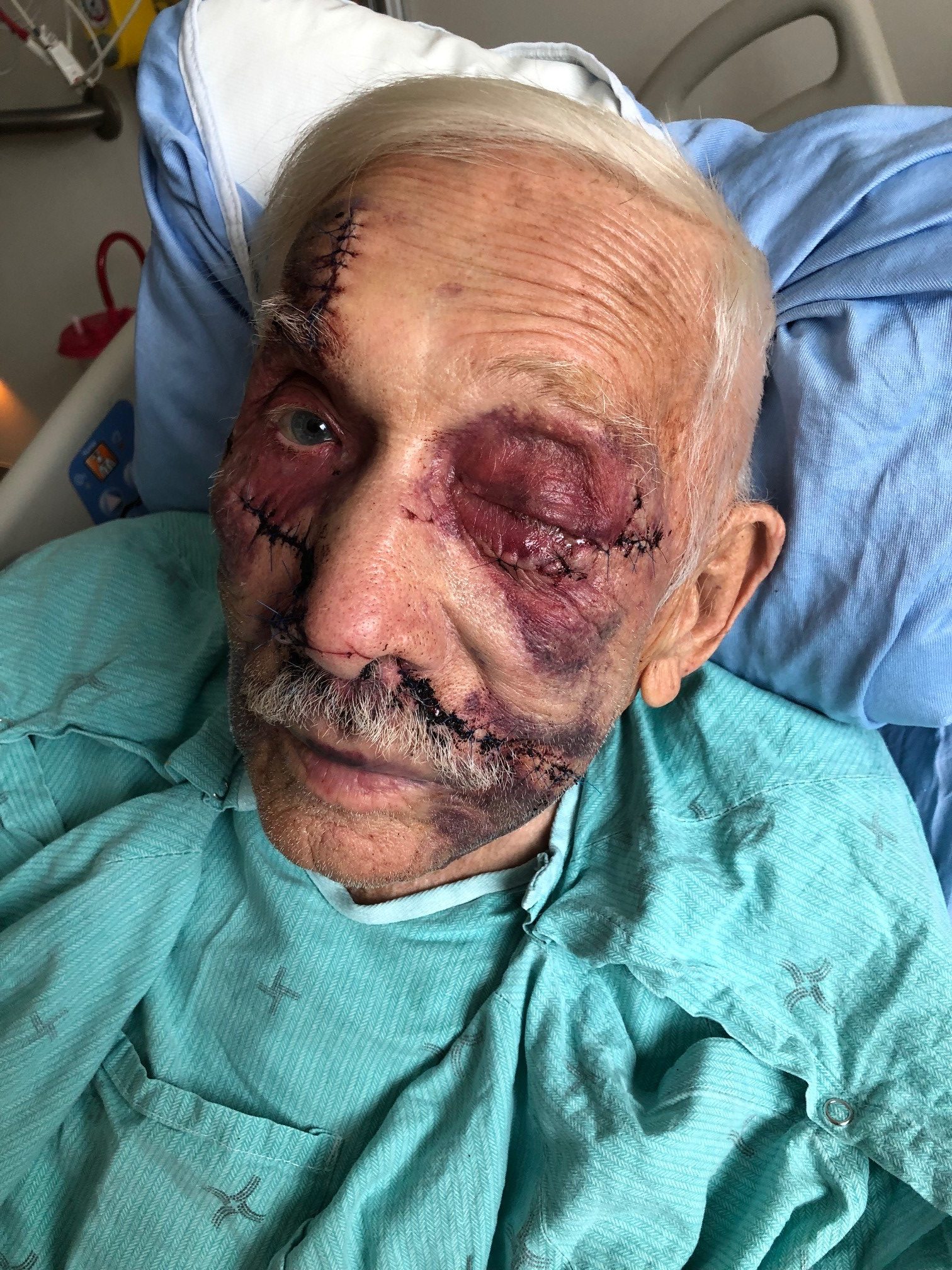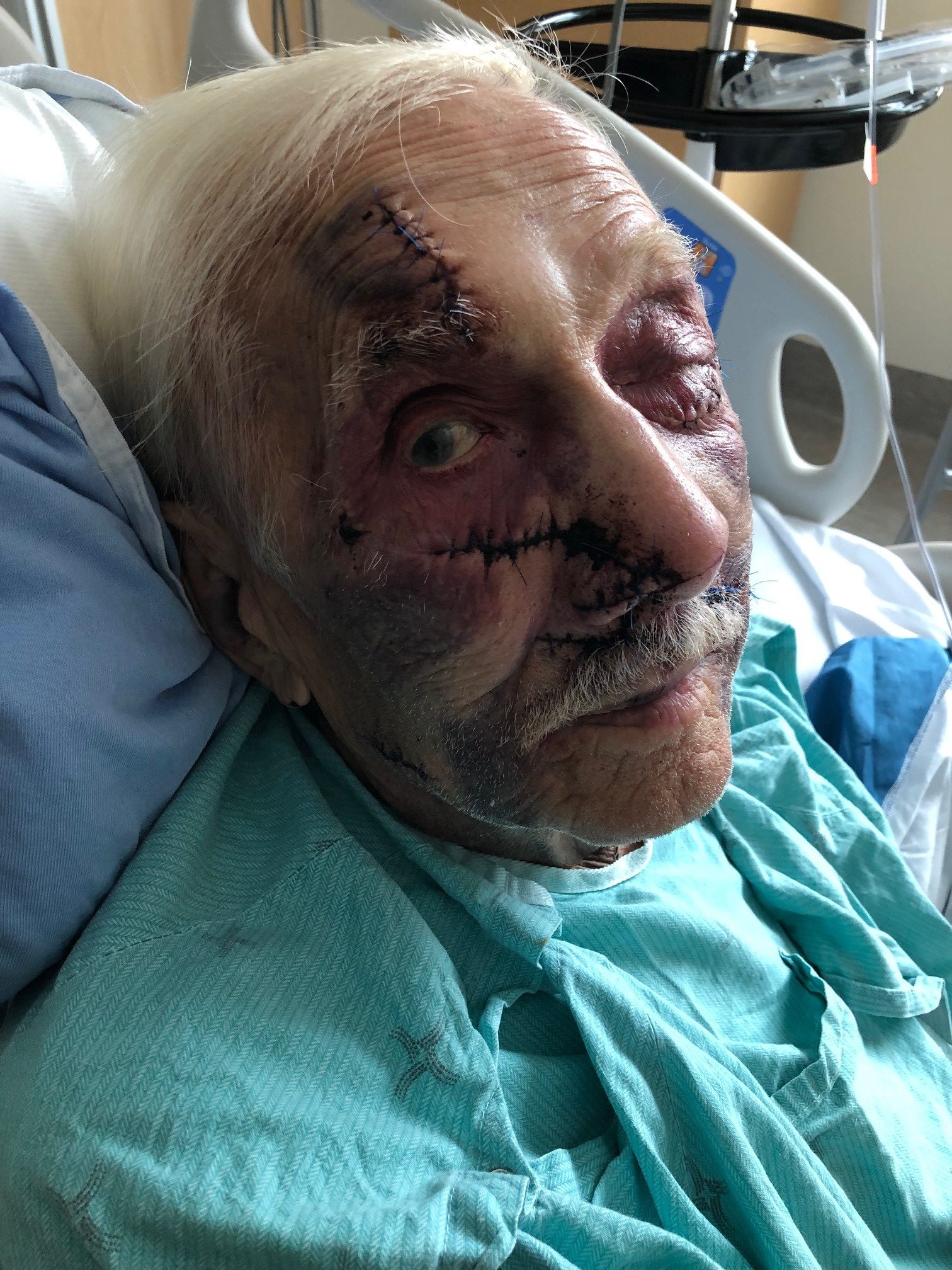The 89-year-old man was randomly attacked early Wednesday morning by a man with a weapon in downtown Courtenay, leaving him with several wounds to his face.