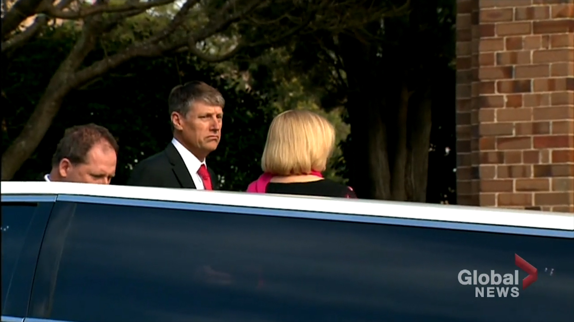 Lucas Fowler‘s family put on brave faces as they arrived at the funeral for the Australian man who was killed in a string of murders in northern B.C. that have triggered a cross-country manhunt for the suspected killers.