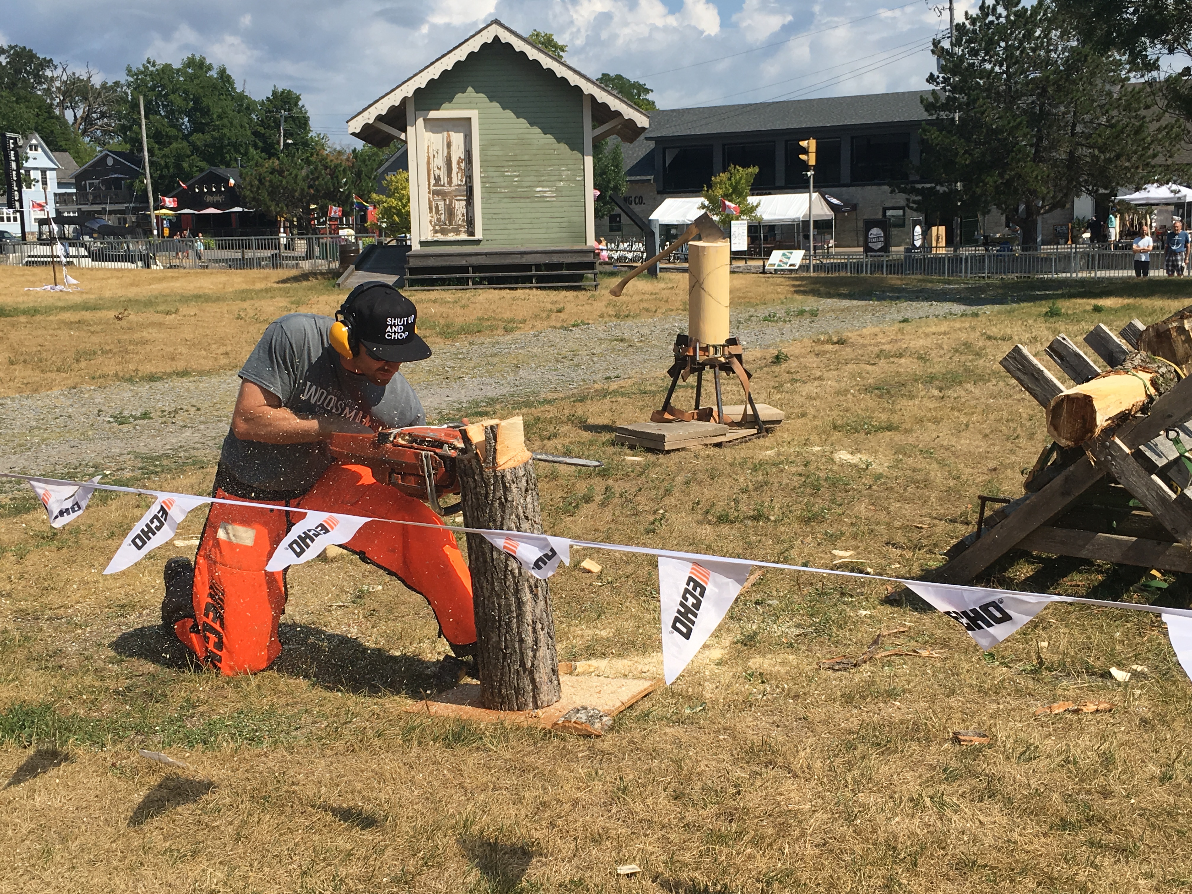 A lumberjack demonstration by Fleming College Students also surprised passersby.