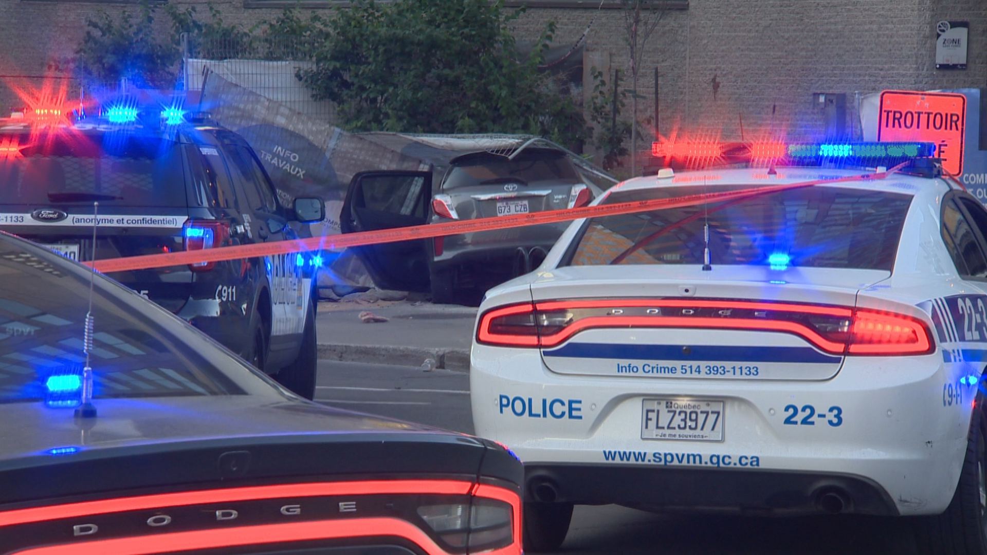 Montreal police say the suspect stole a vehicle while it was stopped at a red light at 5:15 a.m. at the intersection of Ontario and St-Urbain streets.