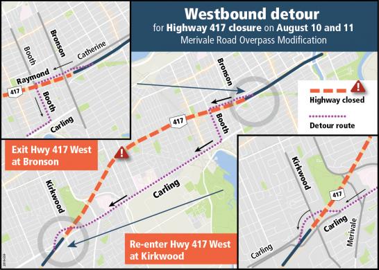 According to the city of Ottawa, the highway will be closed to traffic between Carling Avenue and Bronson Avenue from Aug. 10 at 6 p.m. to Aug. 11 at 11 a.m.