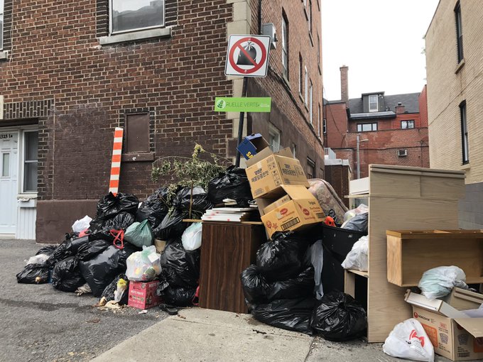 The Côte-des-Neiges–Notre-Dame-de-Grâce borough said it is aware of the problem but did not explain why the trash is still there and why it hasn’t been picked up.