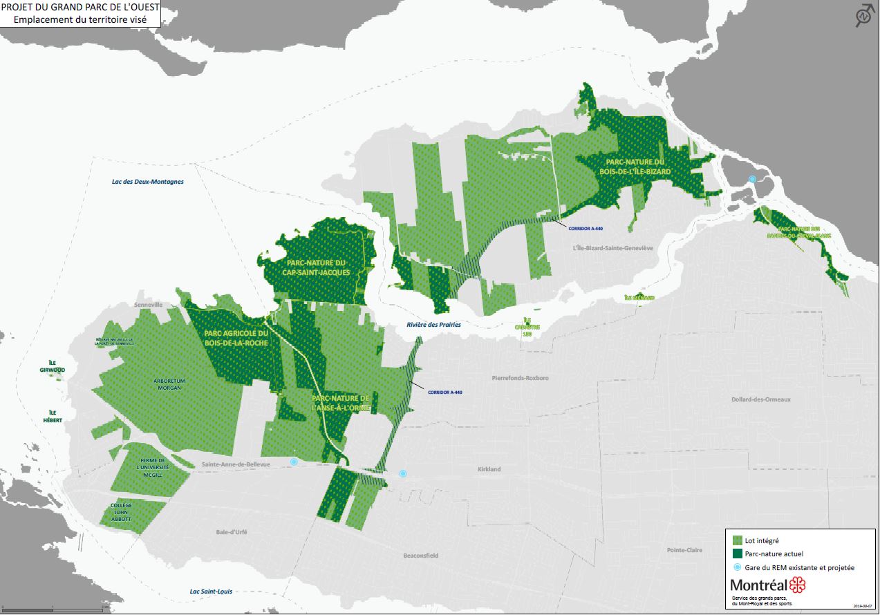 The new Great Western Park, as the city is calling it for now, will incorporate five existing green spaces: l’Anse-a-l’Orme, Bois-de-l’île Bizard, Bois-de-la-Riche, Cap-Saint-Jacques and the Rapides-du-Cheval-Blanc.