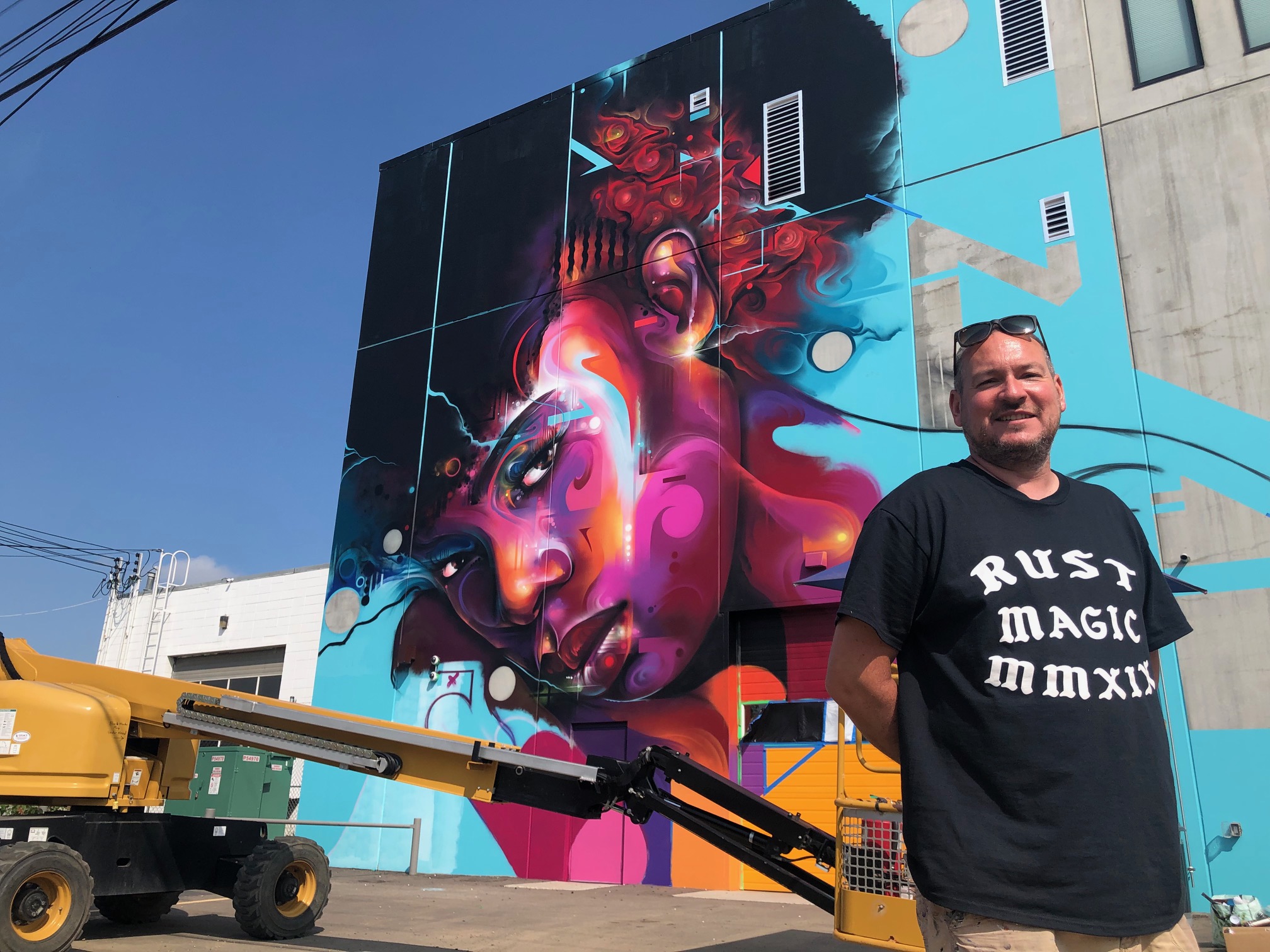 Rust Magic International‘s Trevor Peters and Annaliza Toledo courted Mr. Cenz to come paint in Edmonton after seeing his work in London.