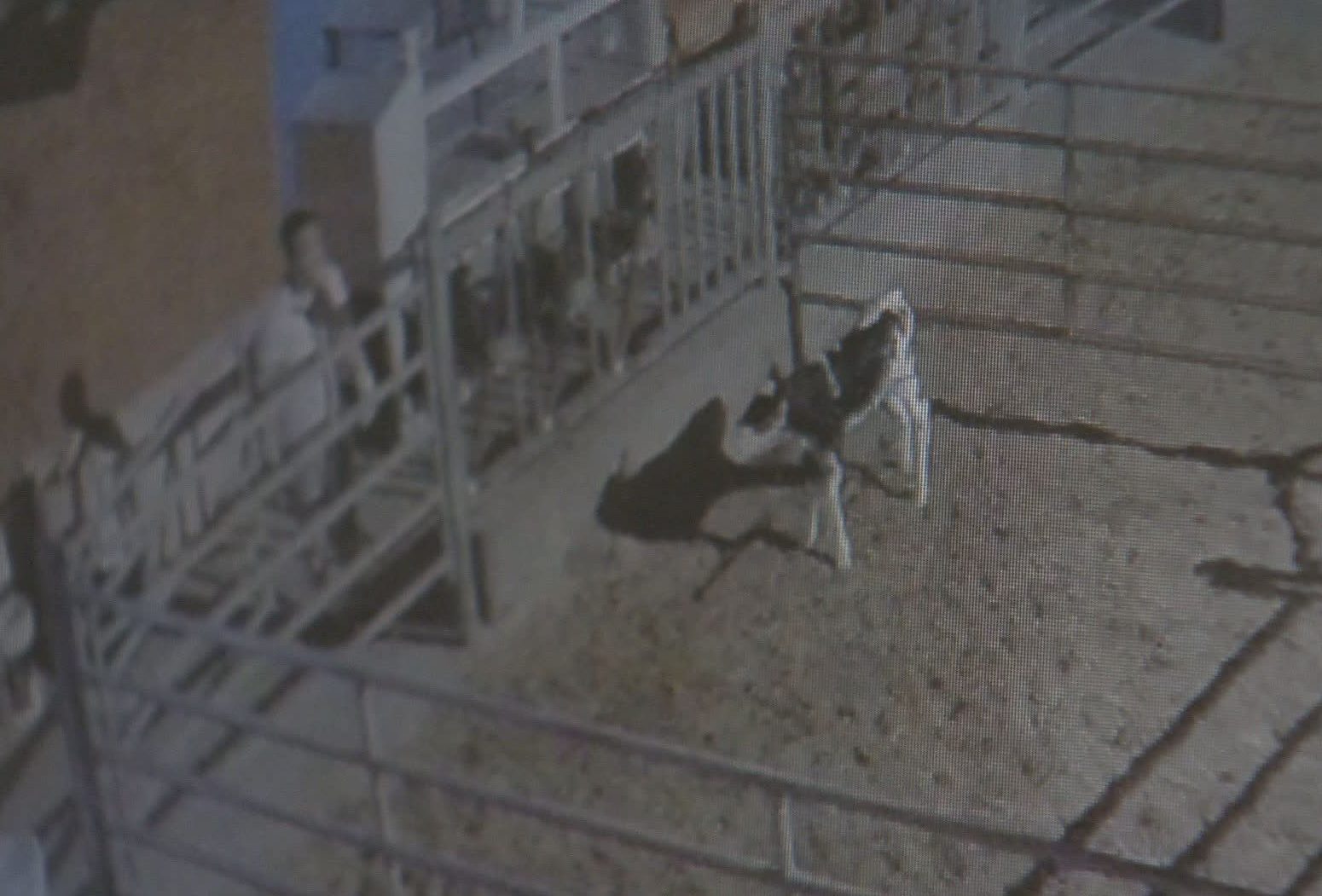 Eagle Acres Dairy shared surveillance photos and video of the alleged incident, showing a man attack the calf in its pen before dragging it out to a waiting SUV along with a woman.
