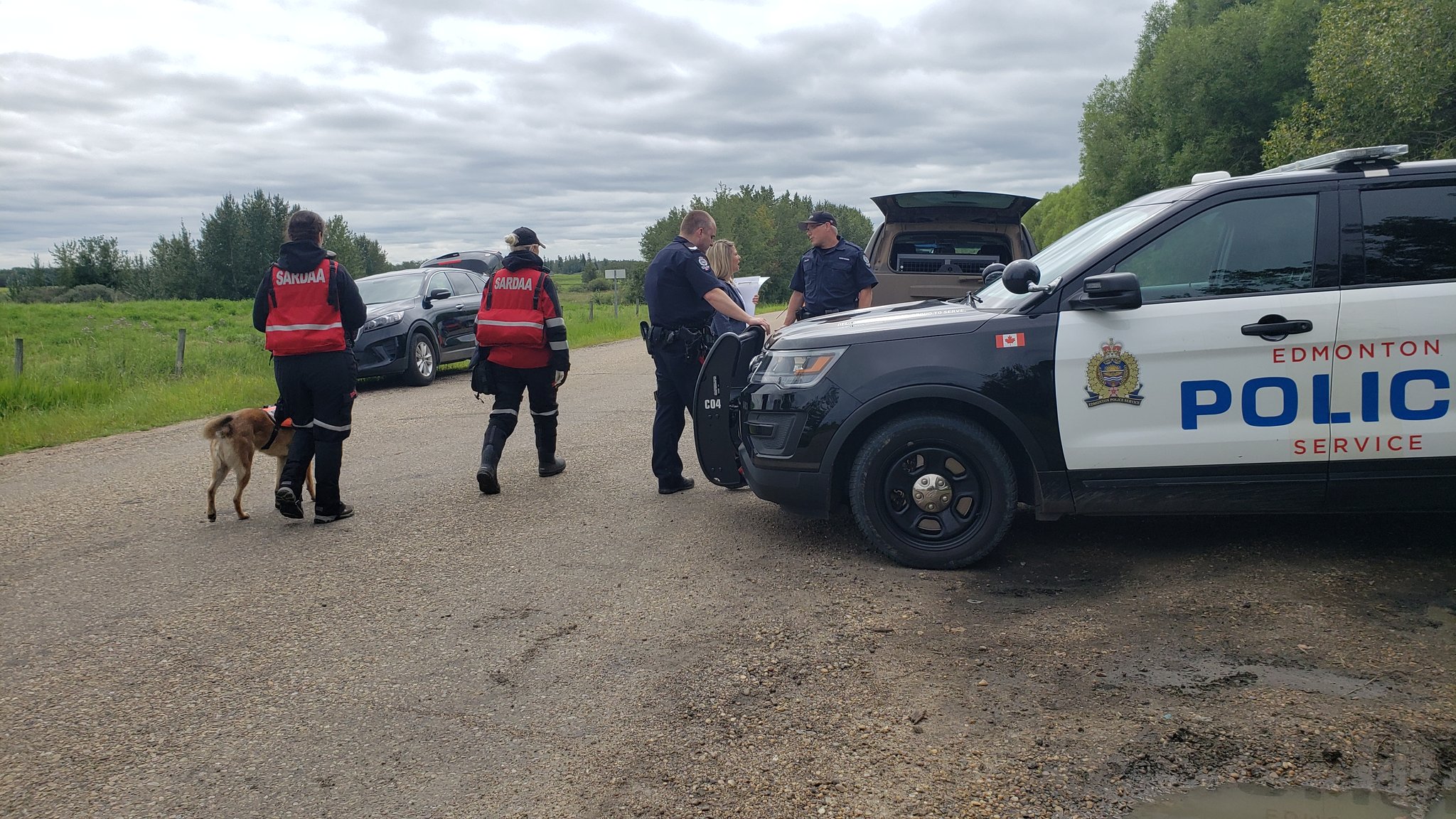There were 24 civilian searchers helping on Saturday and five K9 teams, along with police and search and rescue. Police were focused on four parcels of land surrounding the intersection of Range Road 233 and Township Road 514.