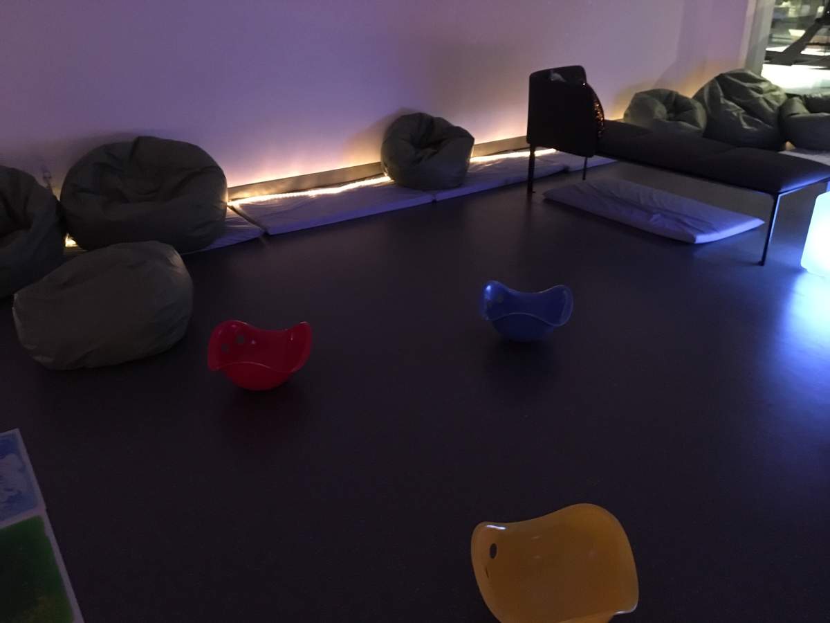 Different kinds of lighting, such as rope lights around the edge of the room and light cubes that shift colour, are also meant to be soothing, Nickolson said.