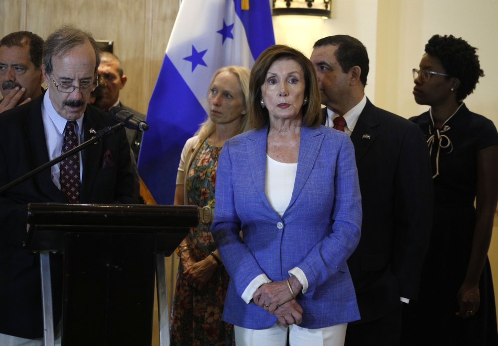 Pelosi traveled with a congressional delegation to explore the causes of immigration and possible solutions. The group visited Guatemala and El Salvador, along with migrant detention facilities in McAllen, Texas.