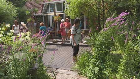 Visitors check out a wild garden at a home in Pointe-Claire during a garden tour on Aug. 11, organized by the area's horticultural society. Global News