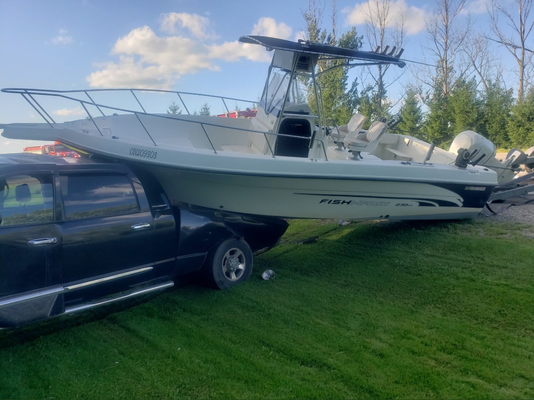 Police say a grey SUV was travelling southbound on Highway 59 around 5 p.m. on Aug. 10 when it reportedly crossed over the centre line and struck a pickup truck pulling a boat head-on.