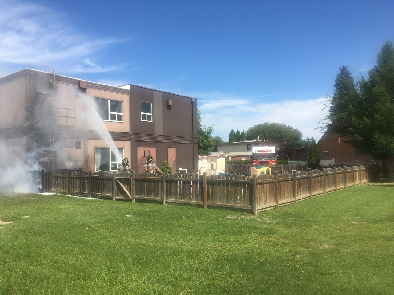 Firefighters said flames were coming from the corner of the daycare building and a fence when they arrived.