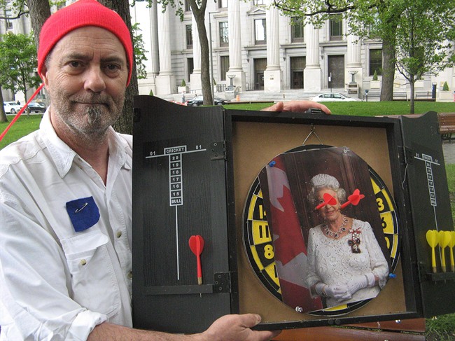 Pierre Veronneau, who made the dartboard used at the rally, said he wanted to make a point that Quebecers don’t feel any connection to the Queen.