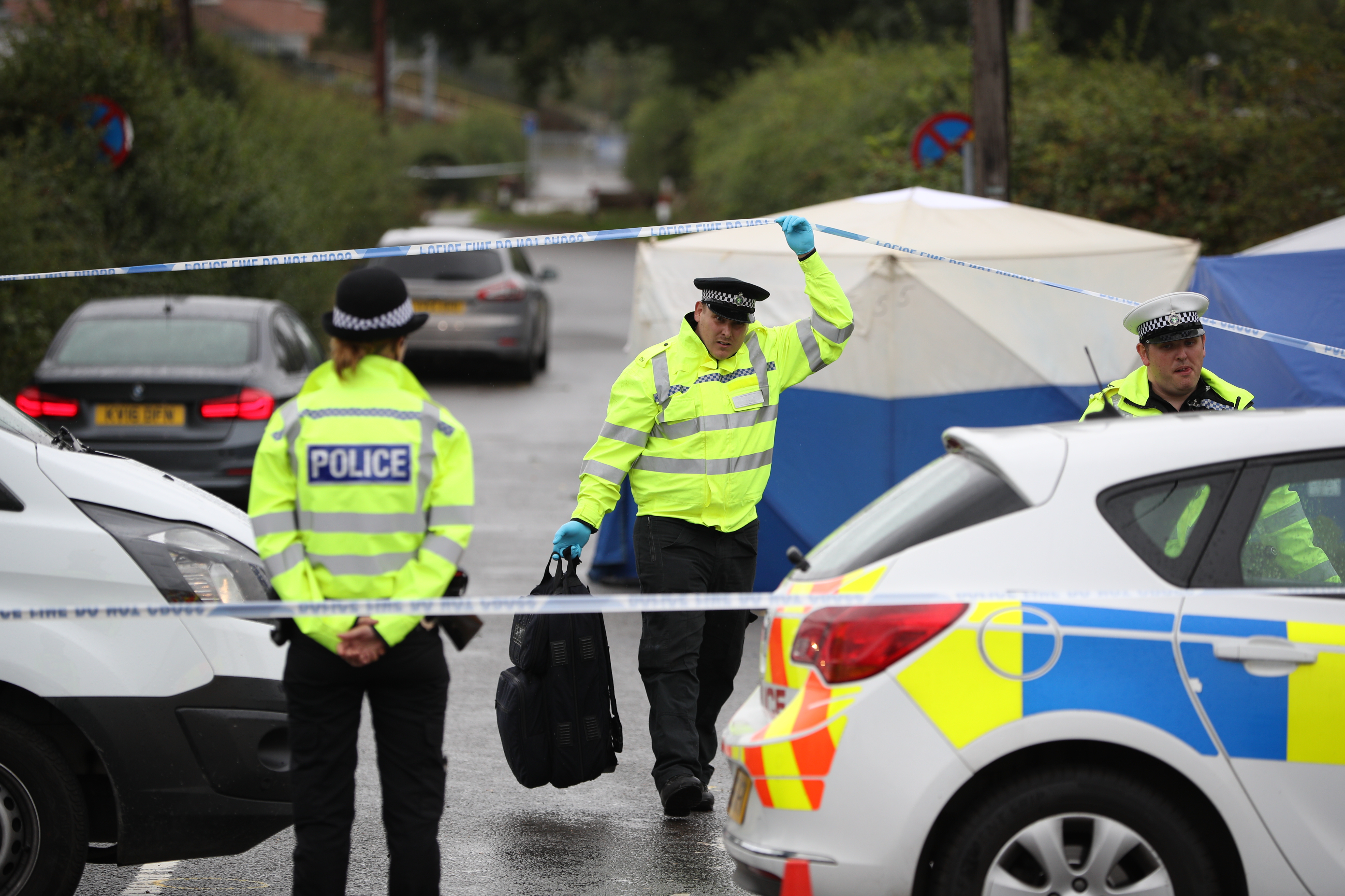 Officers remained at the scene of the incident as forensic investigators took photographs of items on the road. Two white tents were also erected.