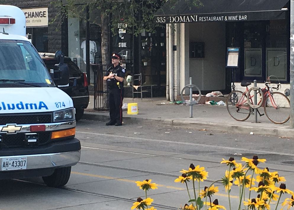 Police said emergency crews were called to the front of Domani Restaurant and Wine Bar in the Roncesvalles Avenue and Grenadier Road area, south of Dundas Street West, just after 4 p.m. after receiving reports shots were fired.