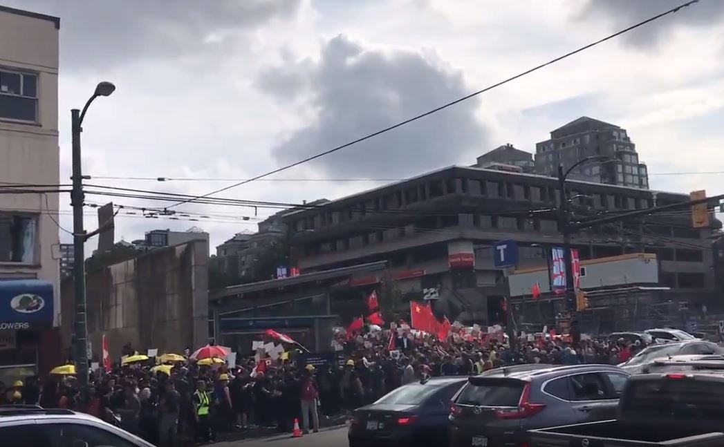 A large demonstration in Vancouver supporting the pro-democracy movement in Hong Kong has been met by pro-China counter-protesters, forcing the closure of a major intersection Saturday.