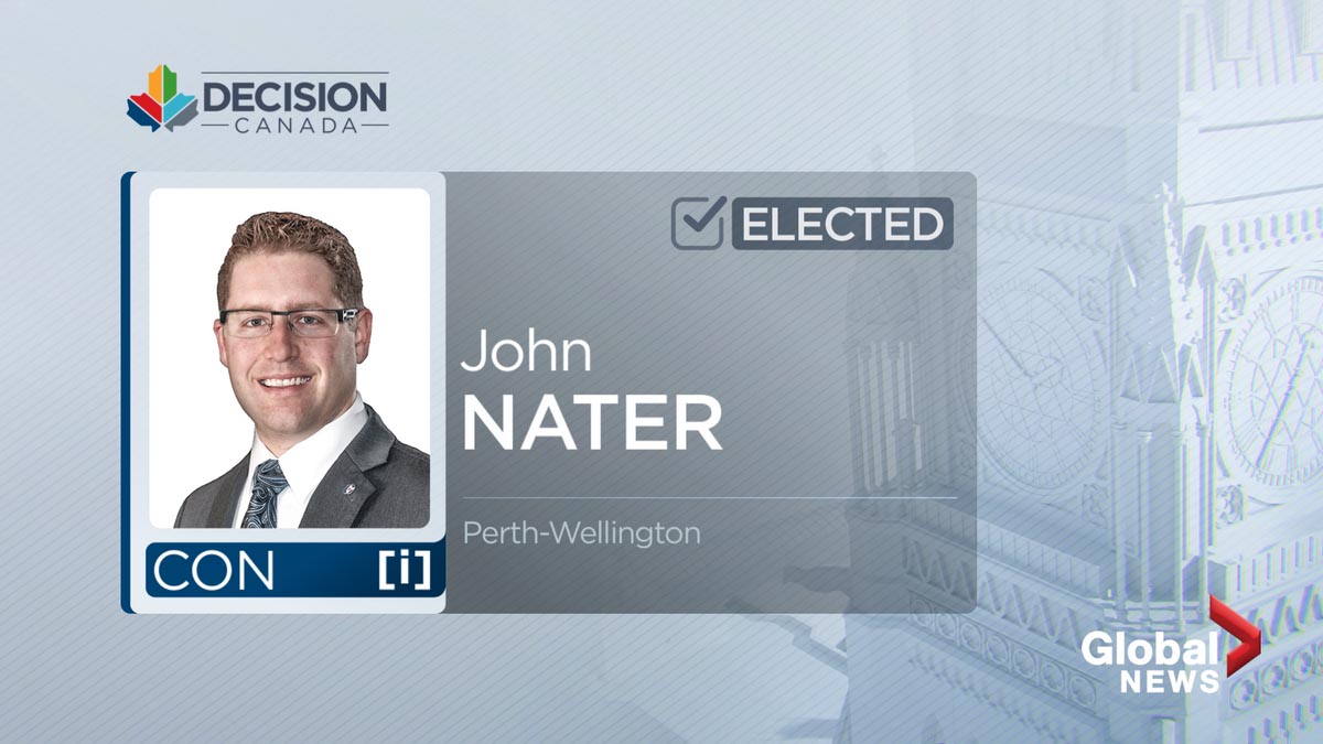 Conservative MP John Nater has been elected to a second term in the riding of Perth—Wellington.