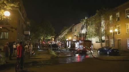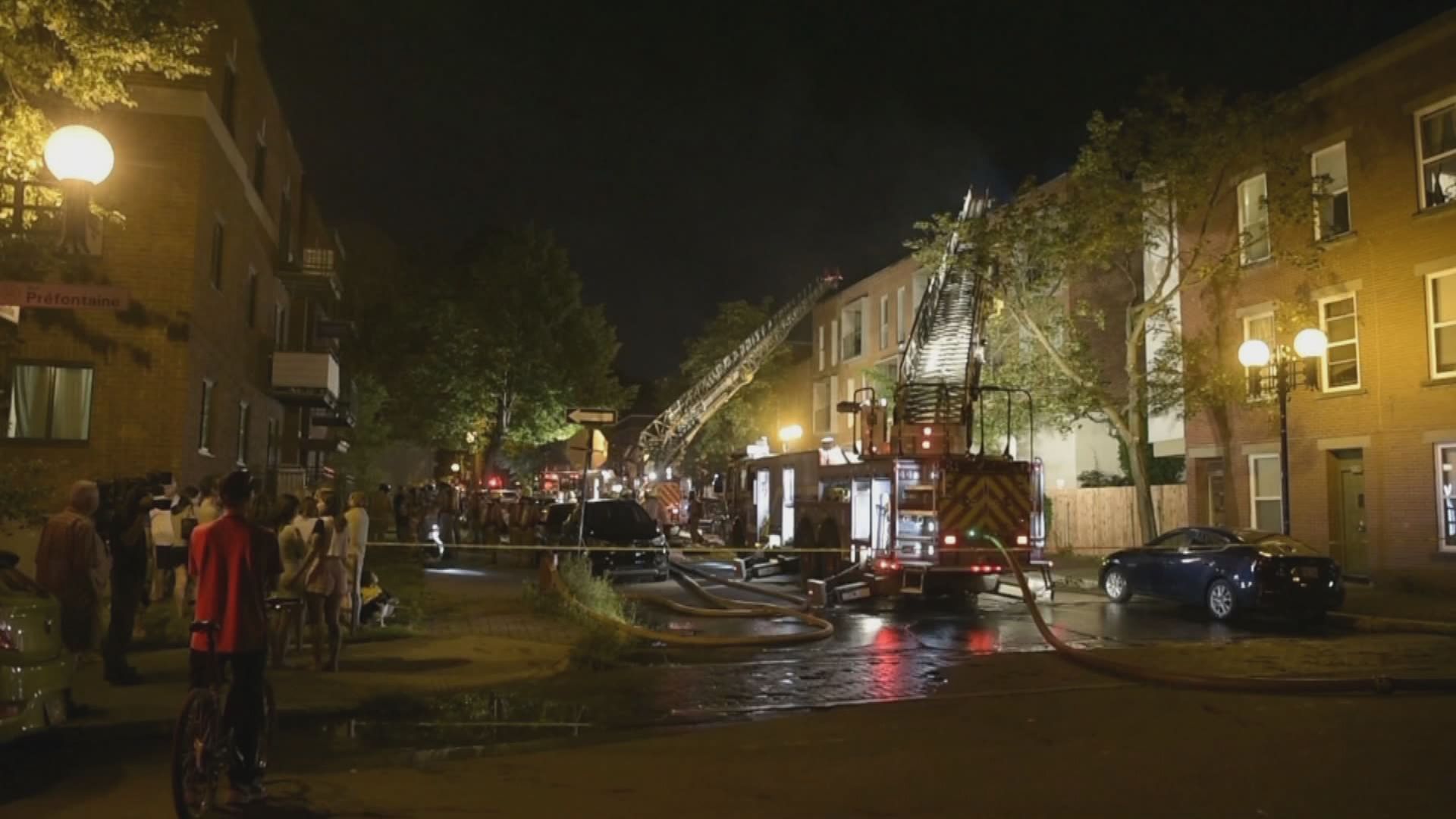 The blaze started at 3:15 a.m. on the roof of the three-storey building, which is located on Rouville Street near Préfontaine Street.