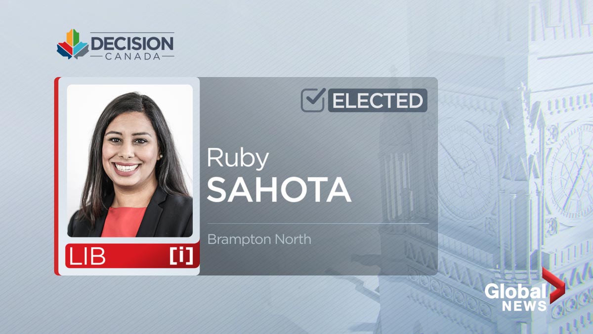 Liberal MP Ruby Sahota has been elected to a second term in office for the riding of Brampton North.