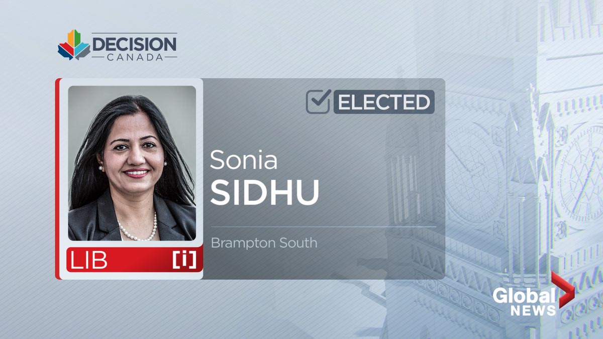 Liberal MP Sonia Sidhu has been re-elected by voters in the riding of Brampton South.