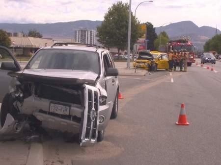 A two-vehicle accident along Highway 97 in Kelowna on Wednesday involved a taxi.