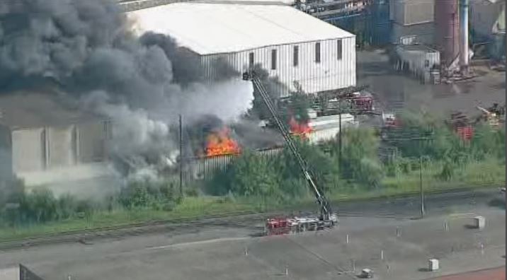 A large fire at a Mississauga industrial building has forced GO Transit to suspend service on the Milton train line.