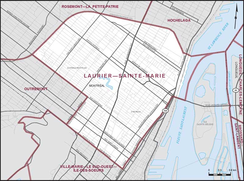 Laurier—Sainte-Marie is a downtown Montreal riding which includes the eastern part of downtown Montreal and the western part of Centre-Sud. Heritage sites like Pied-du-Courant Prison are also located in the district.