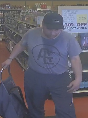 Police say the man often wears a grey T-shirt or red sweatshirt, along with black runners and baseball cap. Officers allege the man steals the liquor by putting it in duffle bag.