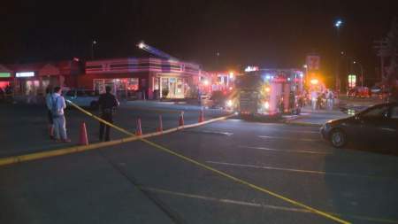 The fire progressed and disabled the store’s electrical power, automatically triggering emergency lighting.