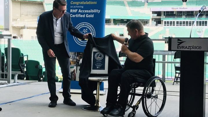 Mosaic Stadium is the first stadium in Canada to receive the Rick Hansen Foundation‘s (RHF) gold-rating in accessibility, and it’s also the first facility in Saskatchewan to receive the honour.