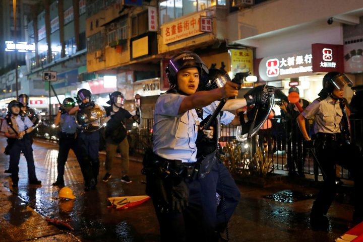 The confrontations were the latest violence in a summer of protests that have shaken the city’s government and residents. Police also brought out water cannon trucks for the first time, though they did not use them directly on protesters.