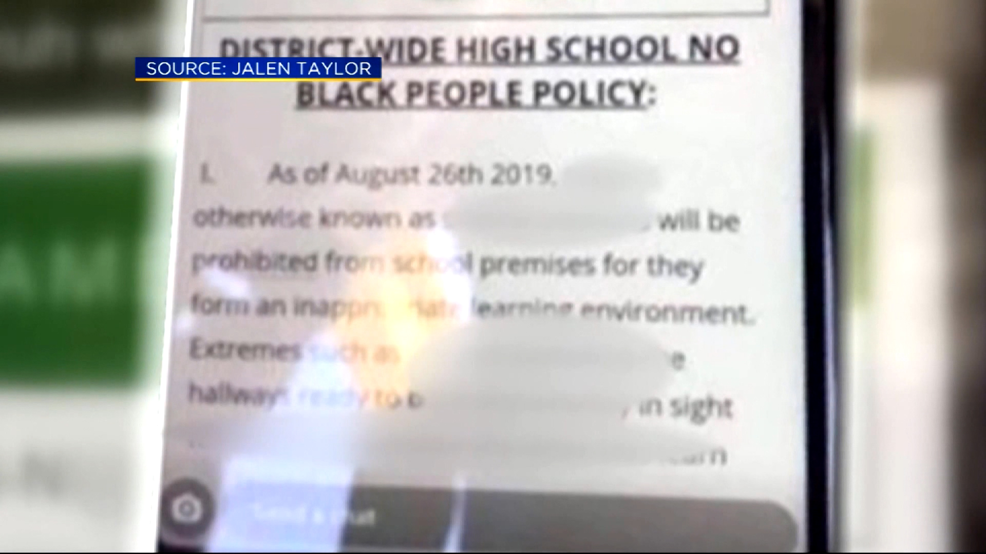 The notice displayed what it called a “district-wide high school no black people policy,” which said black people were prohibited from school premises as of Monday, CBS Sacramento reported.