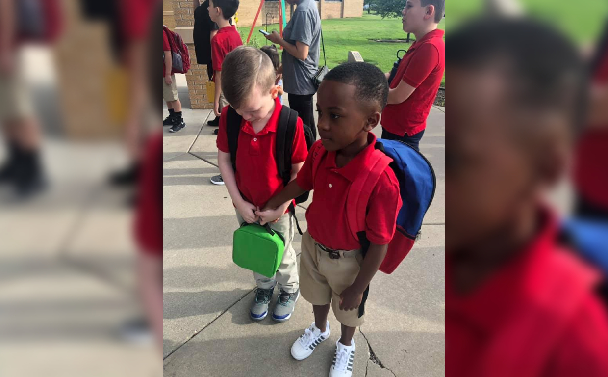 Instead of ignoring him, Christian took his hand and walked him towards Minneha Core Knowledge Elementary; the end result is a heartwarming photo, and a simple lesson for everyone to be more kind.