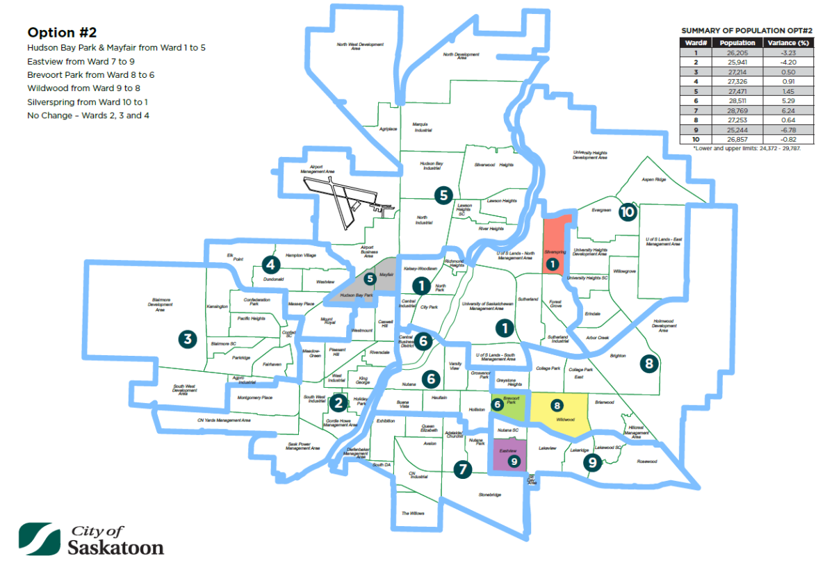 A commission tasked with reviewing Saskatoon’s wards has come up with options for boundary changes leading into the 2020 municipal and school board elections.