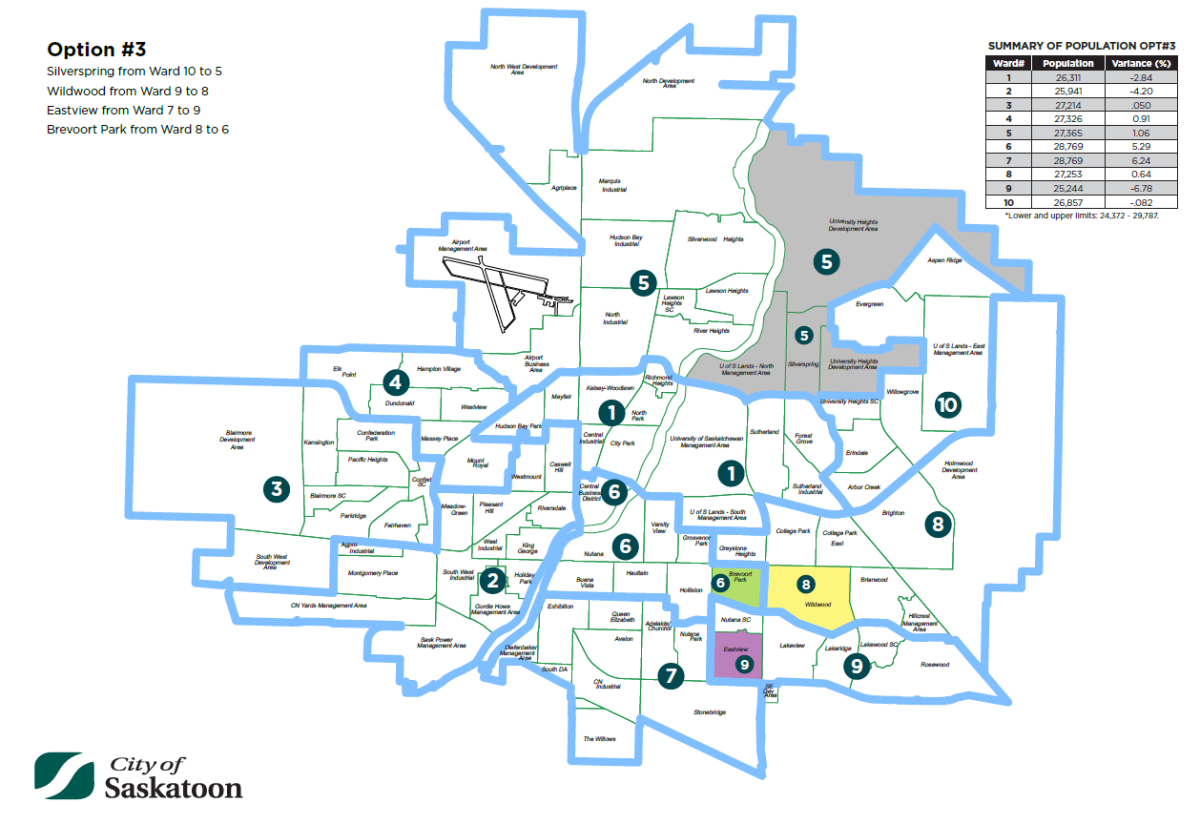 The three potential options proposed by Saskatoon municipal wards commission will specifically affect wards 5, 7, 8, and 10.