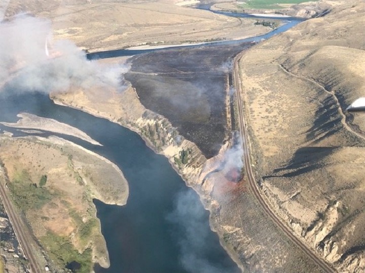 On Monday, a grass fire burning east of Cache Creek along the Trans-Canada Highway quickly grew to 41 hectares.