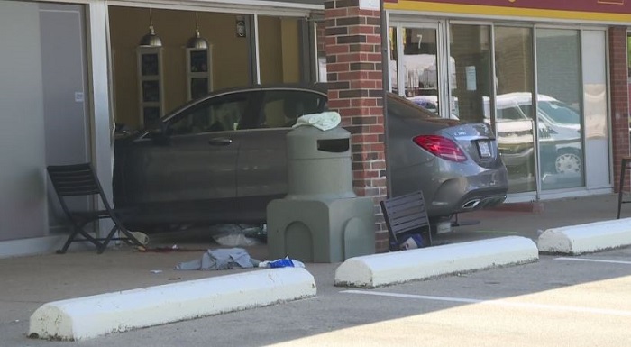 Peel regional police say the car crashed around 11 a.m. on Wednesday, hitting a man sitting in front of the store.