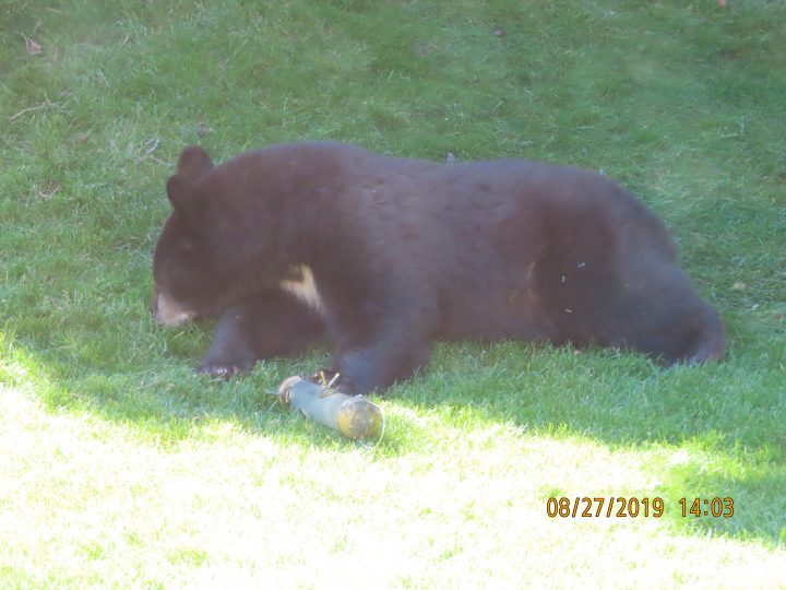 “He’s just doing bear stuff. He’s not getting into any garbages or causing problems with pets or anything, so as long as he just moves along through the bush behind the house, I think he’s OK.”