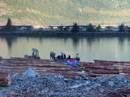 Police say it appears the man was paragliding off the Stawamus Chief, but went into a spin and fell into the log boom area, just to the west of his launch point.
