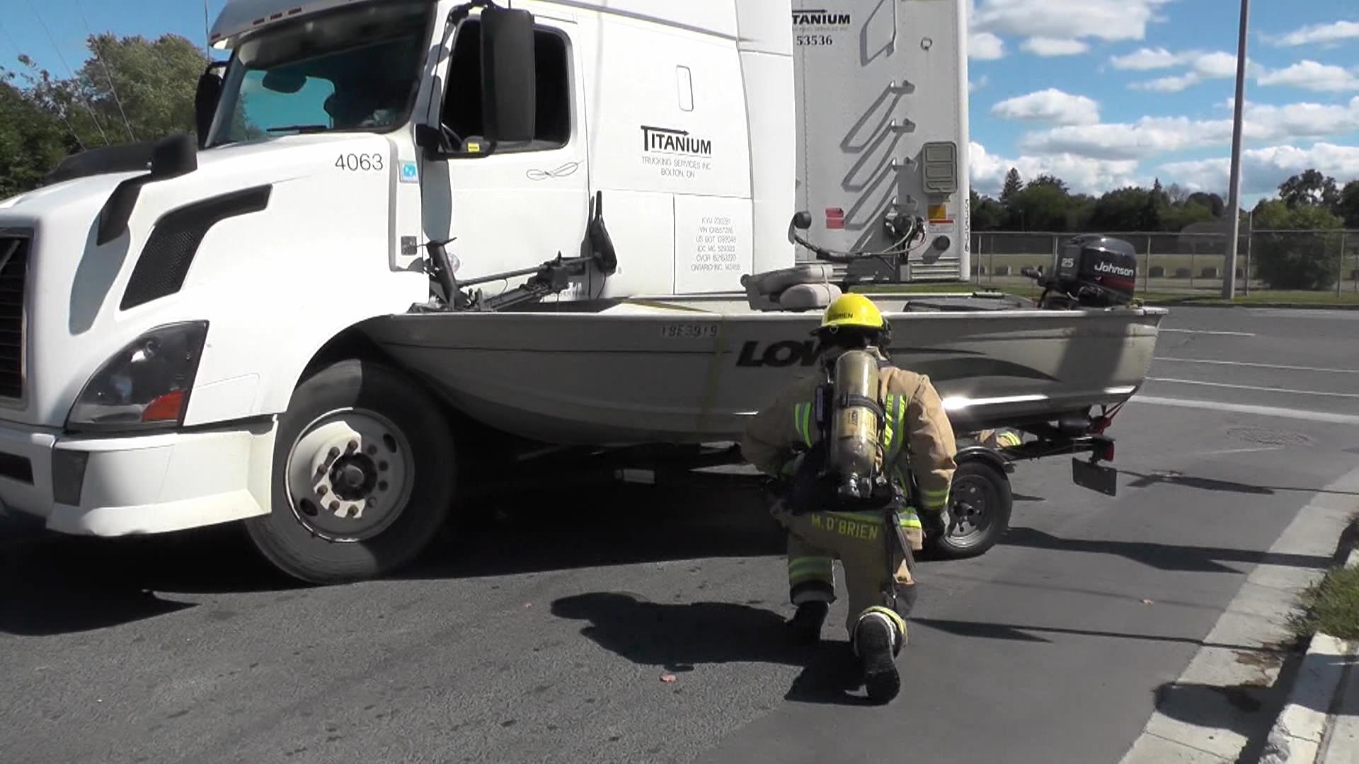 The boat collided with the transport truck just as the truck was turning north onto Aylmer Street.