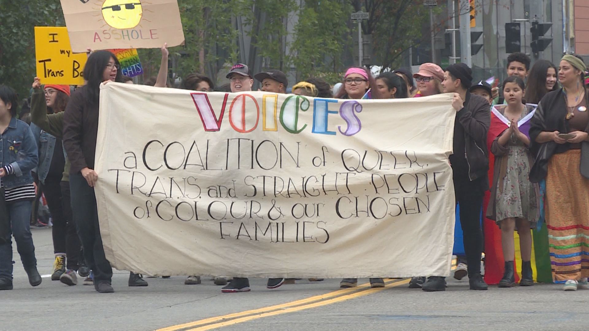 “I’m here marching, not with the NDP but with the conversion therapy working group, who have shown that there are a number of survivors speaking up against the harmful practice of conversion therapy,” Irwin said.