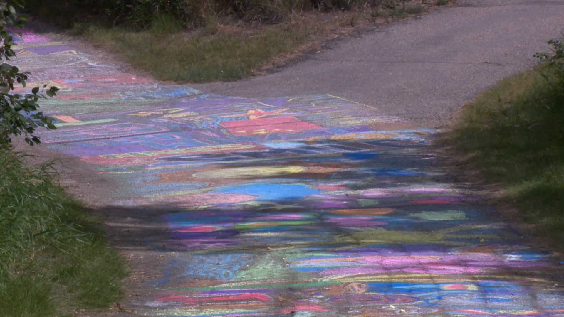Chalkers needed to fill in a two-metre wide section of the trail, making sure no concrete was visible. People could draw anything Meewasin themed.