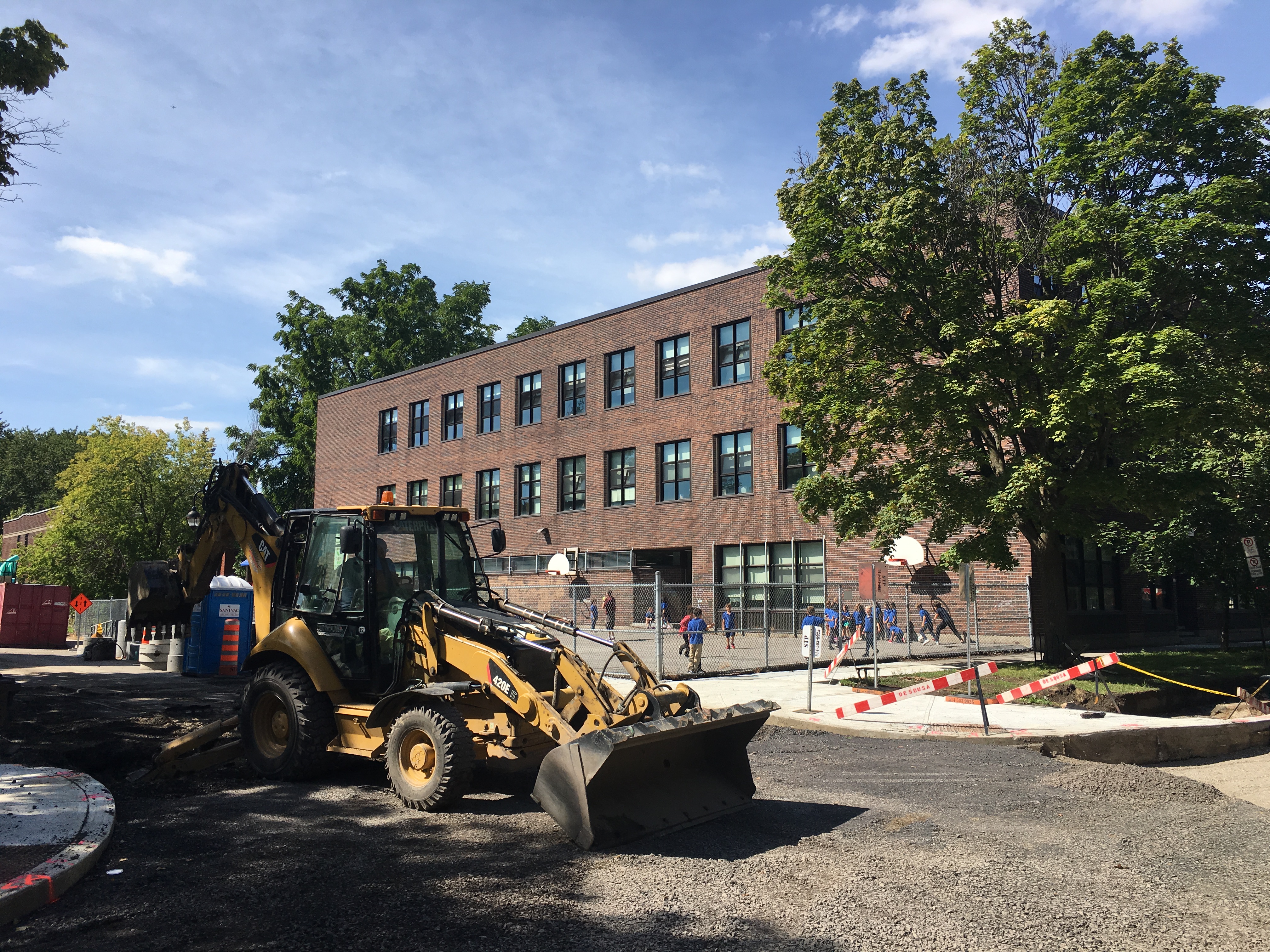 On their first day back after summer break, students at St-Gabriel were greeted by heavy machinery, piles of concrete and even a portable toilet for workers right next to the school yard.