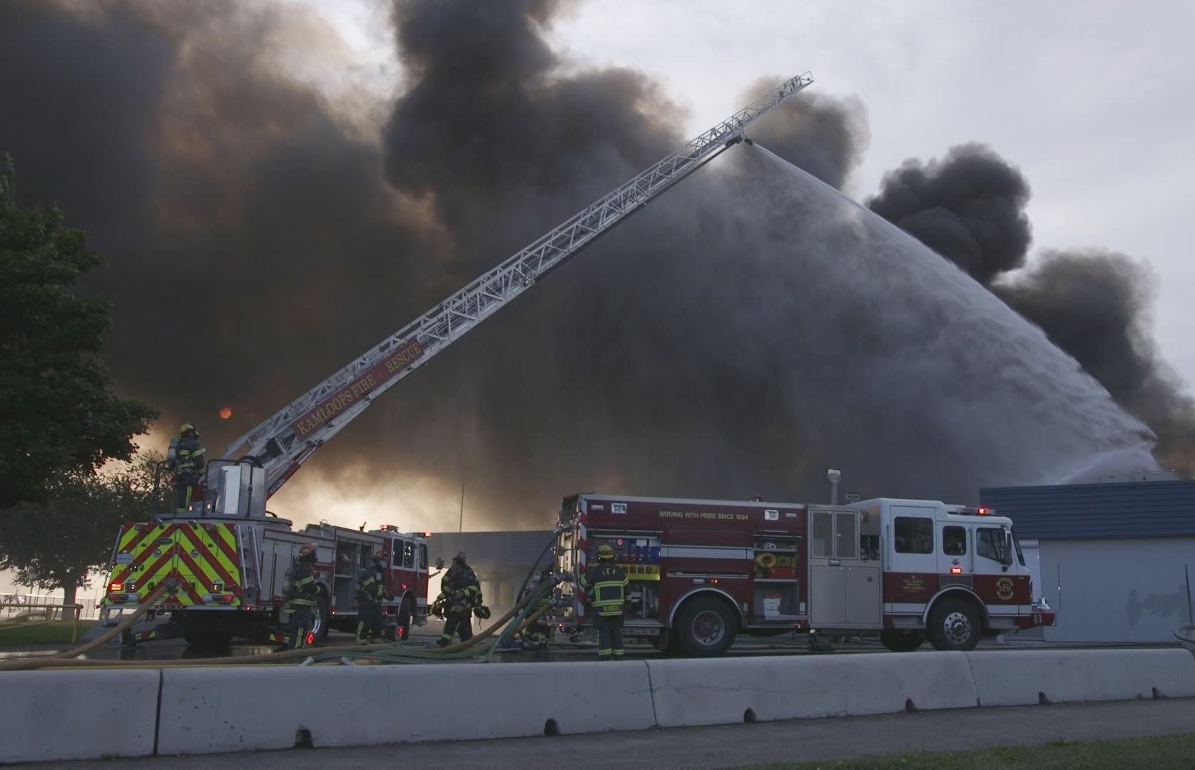 Kamloops Fire Rescue said the fire was quickly upgraded to a two-alarm call, bringing two dozen firefighters to the scene to fight the fire defensively.